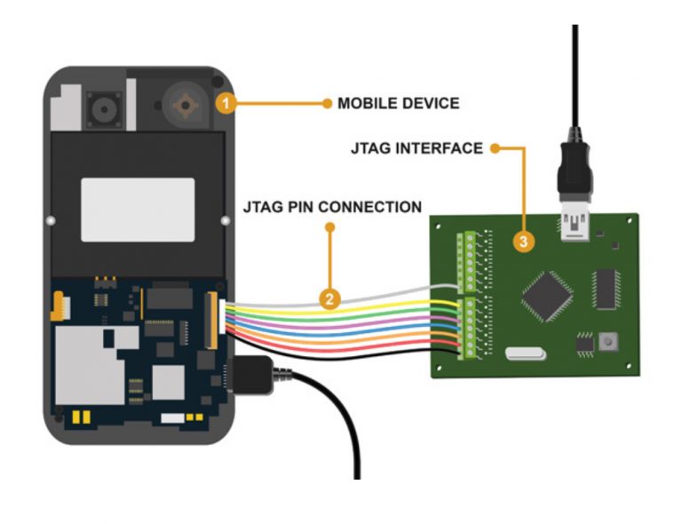 JTAG involves the disassembly of a mobile phone and the connection to test points or components on the motherboard to read data from the handset. The connection can be made using specialist adapters, micro-soldering wires or a combination of the two. Wires can be de-soldered after data extraction to return the handset to its prior state. Data can be extracted from handsets unsupported by forensic software along with PIN, pattern or password-protected phones.
